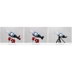 Un support de fixation en queue d'aronde de type Vixen (largeur 43 mm / longueur 230 mm) équipe la lunette pour pouvoir la fixer solidement sur votre monture équatoriale, par exemple de type monture Sky-Watcher EQ5 voire HEQ5, ou bien les montures ZWO AM3N ou AM5N.