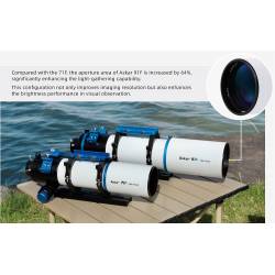 En astrophotographie, cette lunette vous donnera des images de haute qualité tout en bénéficiant d'un champ plan jusque sur les bords. La lunette excelle donc pour l'imagerie de très grandes nébuleuses, de champs de galaxies, d'amas ouverts et de grandes comètes...