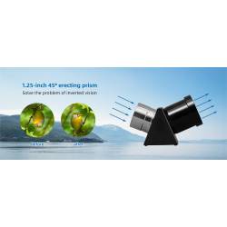 En complément, un renvoi-coudé à 45° doté d'un prisme redresseur, permet de gagner en confort visuel et de redresser l'image. Il est notamment utile pour l'observation terrestre, principalement en journée.