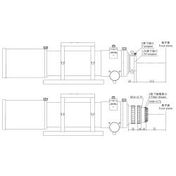 Cet objectif triplet ED de haute qualité est complété, à l'intérieur du tube optique, d'un correcteur composé d'un seul élément optique (formule Petzval). Il en résulte une image plane sur un cercle d'image de 44 mm de diamètre, permettant l'utilisation de caméra d'imagerie à capteur grand format.