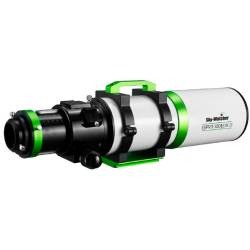 L'optique de 100 mm est protégée par un pare-buée rétractable suffisamment long pour jouer pleinement son rôle. Une fois le pare-buée rétracté, pour le transport ou le stockage, la lunette mesure 46,5 cm de long pare-buée rétracté ; pare-buée déployé, le tube optique mesure 622 mm.