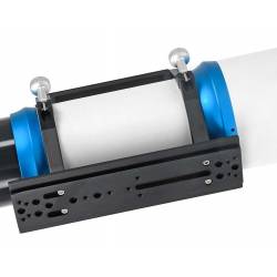 Lunette livrée seule avec colliers et queue d'aronde de type Losmandy (largeur 76 mm). Un support de chercheur standard doté de 2 vis de serrage, équipe le porte-oculaire.