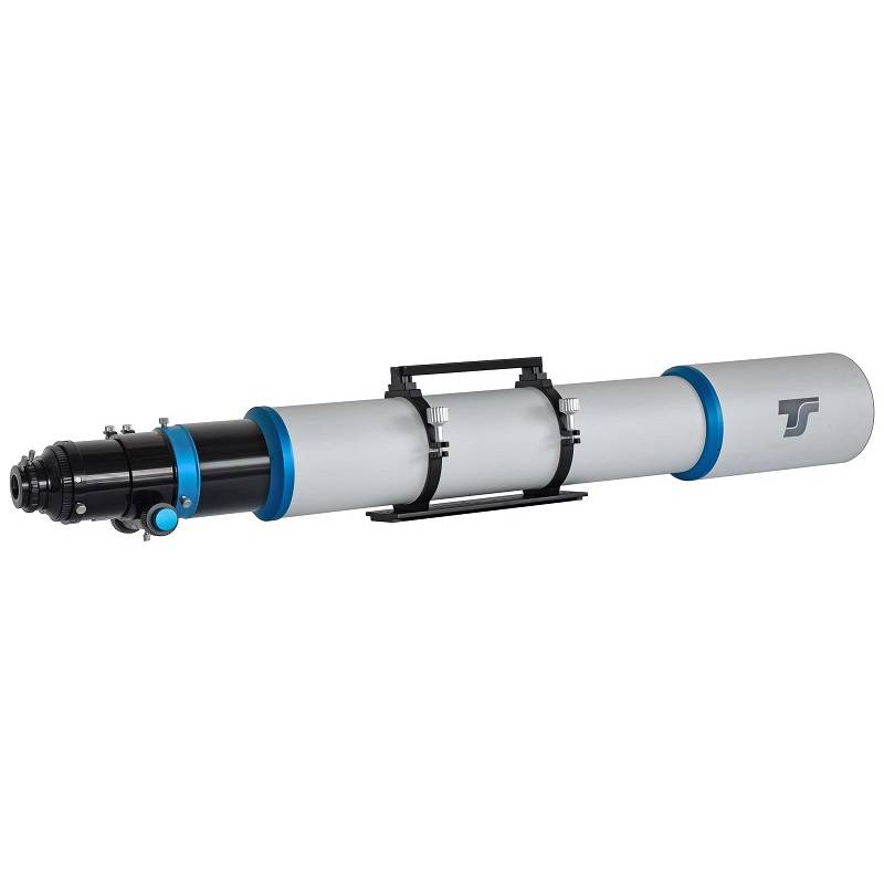Tube optique TS-Optics Deluxe, diamètre 155 mm, focale 1240 mm (F/D 8). Triplet apochromatique FPL-55, mise au point 3.7" démultipliée 1/10ème, 2 colliers de fixation avec filetages femelles 1/4".