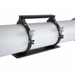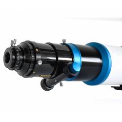 Lunette livrée seule avec colliers et queue d'aronde de type Losmandy (largeur 76 mm). Un support de chercheur standard doté de 2 vis de serrage, équipe le porte-oculaire.