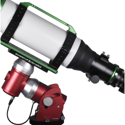 Un support de fixation en queue d'aronde de type Losmandy 3" (largeur 76 mm / longueur 300 mm) équipe la lunette pour pouvoir la fixer solidement sur votre monture équatoriale. Les deux anneaux supportant le tube optique, sont chacun dotés de 2 x 3 trous filetés en M6 mm pour pouvoir y fixer une deuxième queue d'aronde, par exemple, recevant une instrumentation photographique supplémentaire.