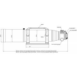L'optique de 130 mm est protégée par un pare buée rétractable de 162 mm de diamètre extérieur, suffisamment long pour jouer pleinement son rôle. Une fois le pare buée rétracté pour le transport ou le stockage, la lunette mesure 843 mm de long.