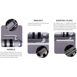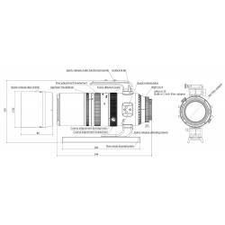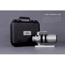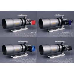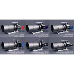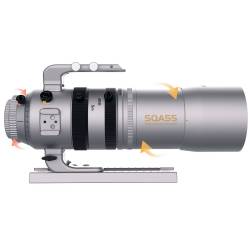 Une poignée ergonomique permet de transporter l'appareil très facilement pour, par exemple, y fixer une petite lunette guide équipée d'une caméra de guidage. Il y a en tout 4 bases multifonctions à fixation ou dégagement rapide tout autour de l'objectif, qui peuvent être utilisées pour connecter divers accessoires pour la photographie et l'astrophotographie.