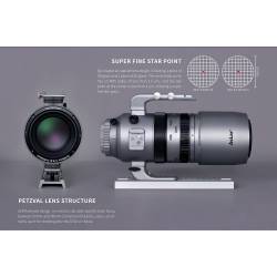La conception optique Petzval génère automatiquement un champ plan et ne nécessite pas d'ajustement de backfocus, l'instrument par conséquent directement utilisable tel quel, sans réglage optique excepté la mise au point.