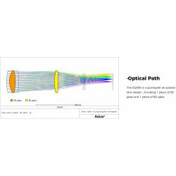 L'astrographe et téléobjectif SQA55 possède un objectif quintuplet apochromatique de 55 mm de diamètre et 264 mm de focale. Son chemin optique Petzval est composé d'un quintuplet apochromatique (5 lentilles) traité multi-couches : il diffuse très peu la lumière (l'objectif triplet frontal est en verre ED (-Extra Low Dispersion-) et délivre des images nettes, avec des étoiles ponctuelles et contrastées jusque sur les bords du champ.