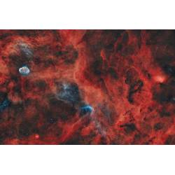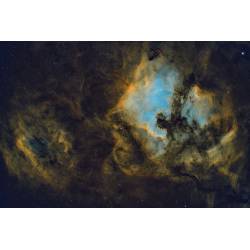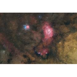 L'objectif frontal est un triplet doté d'un élément central en verre SD et est complété d'une correction optique composée d'un élément en verre ED (Extra Low Dispersion). Il en résulte une image plane sur un cercle d'image de 44 mm de diamètre, permettant l'utilisation de caméra d'imagerie à capteur grand format. Cette image de la nébuleuse de l'Amérique du Nord ou bien aussi celle de La Lagune, témoignent de la qualité de l'objectif.