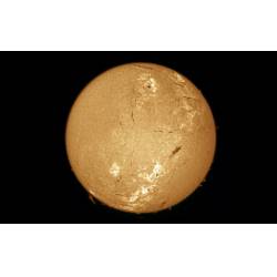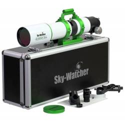 La firme Sky-Watcher propose cet instrument doté d'un filtre solaire H-Alpha. Ce filtre d'exception permet de voir ou photographier le Soleil sous une "autre lumière" que la lumière visible à notre oeil, de manière à visualiser à la fois le bouillonnement de la surface solaire (granulation), et ses parfois impressionnantes protubérances (gigantesques jets de gaz à haute température expulsés dans l'espace). La sphère solaire alors parfaitement définie, se trouve constellée de fins filaments sur ses bords… ou de filaments sombres (les protubérances) sur sa surface. Les taches solaires se montrent de manière un peu différente et sont entourées généralement de zones actives plus chaudes et donc plus brillantes, tourmentées par le champ magnétique local autour de la dite tache.