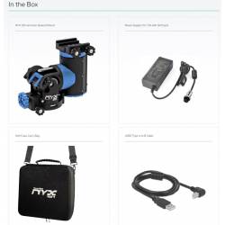 Monture Harmonic NYX-88 livrée avec alimentation électrique 12V, housse souple de transport, adaptateur métal (pour ajustement de l'azimut sur trépied) et câble USB 2.0 coudé (voir les 5 dernières photos pour les éléments livrés).
