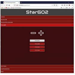 La prise en main de la raquette de commande StarGO2 Pro est accessible à tous : les quatre touches de directions (Nord, Sud, Est et Ouest) permettent d'orienter la monture sur tous le ciel à la vitesse voulue, du pointage au centrage. Pour cela, deux touches dédiées à la vitesse des moteurs (speed + et speed -) permettent une gestion simple de la vitesse des mouvements. De même, la raquette StarGO2 Pro comporte deux autres boutons (focus + et focus -) pour gérer les moteurs de mise au point électrique (focuseurs électriques).