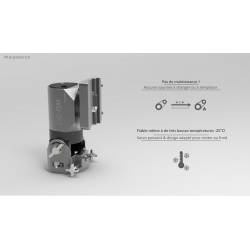 L'assemblage de votre tube optique sur la monture se fait indifféremment via une queue d'aronde mâle (fixée sur le tube) de type Vixen (largeur 43 mm) ou Losmandy 3" (largeur 76 mm).