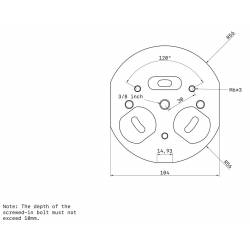 La monture est équipée d'un filetage femelle en M12 (M12 mm x 1,75 mm) pour pouvoir y fixer une barre de contrepoids optionnelle, de manière à pouvoir augmenter sa capacité de charge (jusqu'à environ 20 kg).