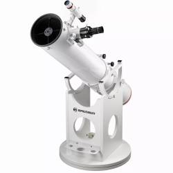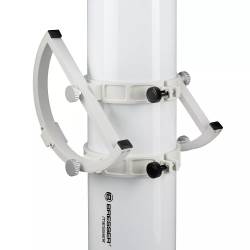 Monté sur une monture azimutale de type Dobson, le suivi des astres s'effectuera de façon intuitive en déplaçant manuellement le tube optique en hauteur et en azimut. La particularité du Dobson Bresser est d'être double-emploi : le tube optique est maintenu grâce à 2 colliers de serrage, ce qui facilite son équilibrage en mode Dobson en le faisant tout simplement coulisser dans ses colliers.