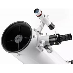 Le télescope est muni d'un chercheur 6 x 30 réticulé (grossissement 6 fois, diamètre 30 mm), pour pouvoir centrer les objets célestes avec facilité : il suffit d'aligner la croix du chercheur sur l'objet céleste de votre choix, pour que ce dernier se trouve centré dans le champ visuel du télescope. Tout cela à condition d'avoir au préalable aligné le chercheur avec le télescope lui-même.