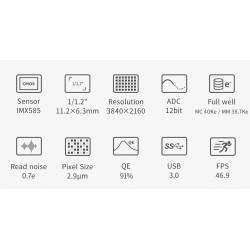 En mode planétaire, sa vitesse d'acquisition atteint la cadence de 46,9 images / seconde à la résolution de 3840 x 2160 pixels en mode 12 bit. Cette vitesse d'acquisition permet de "figer" la turbulence en imagerie planétaire et donc d'obtenir une image finale pourvue de nombreux détails. Son grand champ permet de faire entrer sur le capteur, les satellites des planètes géantes en une seule prise de vue.