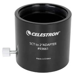 Porte-oculaire SCT vers 2" au coulant 50,8 mm (2"), avec filetage standard de télescopes Schmidt-Cassegrain. Serrage annulaire intégré. Pour adapter un accessoire otique au coulant 2" sur un télescope Schmidt-Cassegrain.