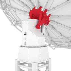 L'ensemble comprend l'antenne de 5 m de diamètre, la monture de suivi et le pied colonne modèle C400-Heavy.