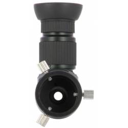 Cet accessoire permet d'éviter de se tordre la nuque pour viser à travers le viseur polaire de votre monture, grâce à son renvoi coudé à visée 90°. Doté d'un système grossissant, ce renvoi coudé s'adapte directement sur l'oculaire de votre viseur polaire. 3 vis latérales disposées à 120° permettent de verrouiller sa fixation.