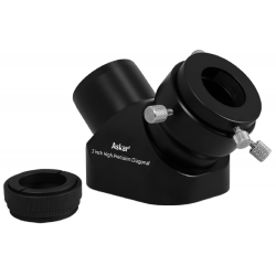 Ce renvoi coudé est complété par une bague d'adaptation supplémentaire au coulant 31,75 mm. Elle s'insère dans le coulant 50,8 mm du renvoi coudé, ce qui vous permet d'y glisser des oculaires au coulant 31,75 mm cette fois. La bague d'adaptation est filetée en M48 x 0.75 mm pour pouvoir y visser des filtres de 50,8 mm de diamètre (2"). Entre-autres, les filtres interférentiels de type OIII, UHC, H-Beta... servent à rehausser le contraste sur de nombreuses nébuleuses.