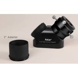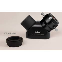 Ce renvoi coudé Askar 50,8 mm à miroir diélectrique, s'insère dans le porte-oculaire au coulant 50,8 mm avec une bague adaptatrice doté d'un filetage de type Schmidt-Cassegrain (SCT) pour pouvoir directement l'adapter directement à l'arrière des télescopes Schmidt-Cassegrain ou Maksutov-Cassegrain dotés du filetage standard SCT 2"x24 tpi.