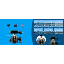 Il est équipé d'une Rotule-Ball B-00K à 360° et pèse en totalité environ 920 g pour une capacité de charge maximale de 4 kg.