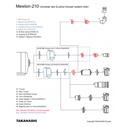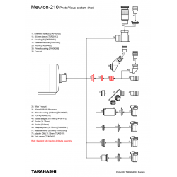 Vous pouvez le compléter avec le réducteur de focale / correcteur de champ Takahashi N°18 pour Mewlon, afin de gagner en champ de vision et en luminosité pour la photographie du ciel profond (voir onglet "Accessoires")
